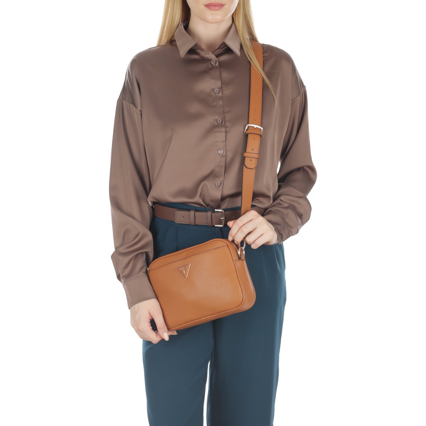 Сумка через плечо Guess Meridian HWBG87 78140_cognac_pc - 2000558684484 коричневый полиуретан 23,5 x 17 x 5,5 Цена 10380 руб. купить в интернет-магазине PanChemodan.ru во Владивостоке