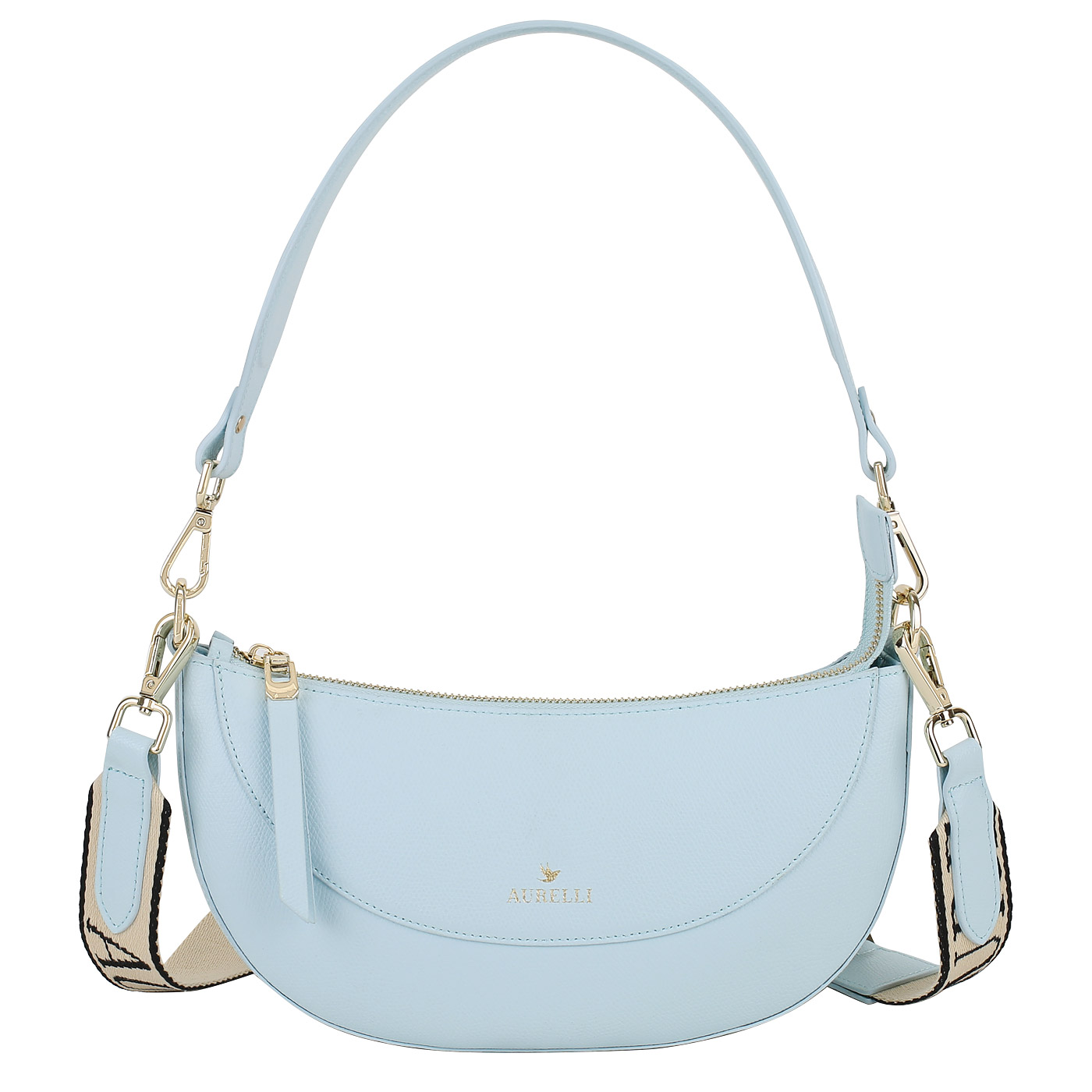 Кожаная сумка Aurelli Bella 23S0155-13G-cielo_pc - 2000558620970 голубой натуральная кожа 27 x 12 x 5,5 Цена 7640 руб. купить в интернет-магазине PanChemodan.ru в Новосибирске
